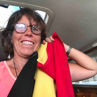 After that job, I wanted to make cushions for the cockpit that is getting old and not so pretty. I first designed them. Then I found the filling and beautiful African fabrics. I could work on my friend’s sewing machine in his boat. It took me some time to figure out how to use it. Once I started I couldn’t stop. I know you don’t have to look at the details but I find it amusing to design something from scratch. I was very glad with the result that brought an exotic touch to the cockpit as some more comfort. I also sewed a new Belgian flag. As I said, it is probably the most luxurious flag on the market – if you count the hours it took me to sew it, the joy of seeing it blowing in the wind was greater then.